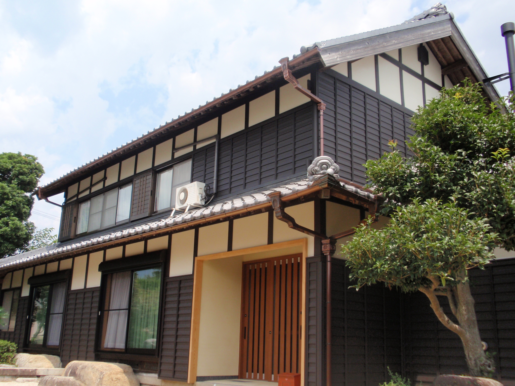 | 改装箇所 | 使用材料 | 材質 | 色 | ◆改築はされてますが築80年の建物です。今回1F部の増改築をするにあたり、お施主様は、「金属製の方が雨仕舞が良いし、耐久性も良いことは分かっているが、見栄えが悪いので、今回は良く目に付く場所でもあるし、板囲いにしたい」 との要望でした。 ◆お施主様の希望を叶えるべく、雨仕舞が良く、耐久性にも強い、尚且つ、和風の伝統美を持った、ファインスチール外装を提案。決定いただきました。 ◆仕上って来るとともに、「こんなに良くなるとは思っても見なかった。二階部も全て張替えして欲しい」と、いうことで全面張替えとなりました。 ◆ ◆お施主様から、「新築同様になり、これで末永く住める。しかも予想以上の格調高い建物になった。思いをかなえてくれて有難う」と、大変喜んで、いただきました。 |