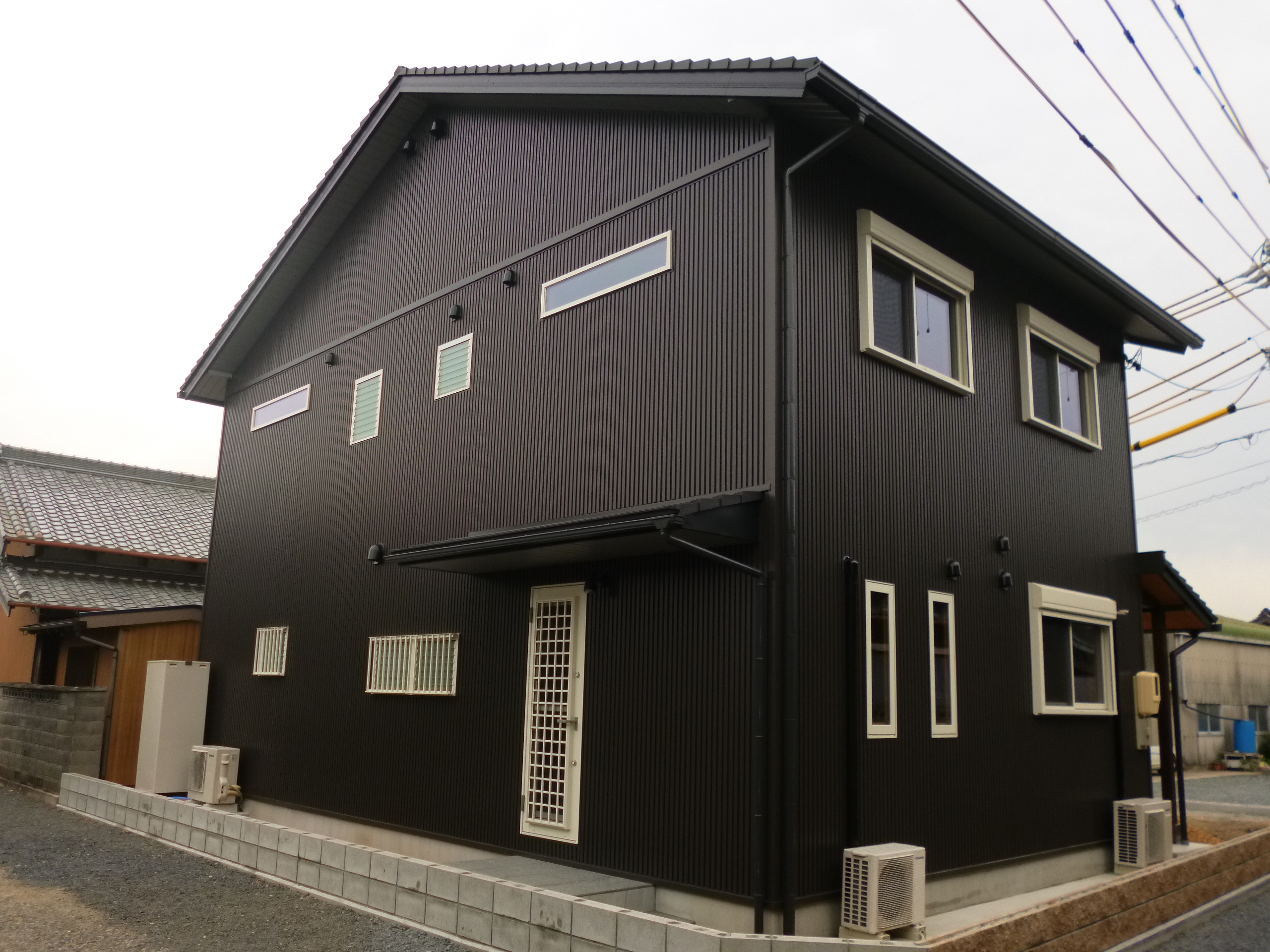 | 施工箇所 | 使用材料 | 材質 | 色 | ◆某ハウスメーカー様の建物です。今回初めて金属製外壁材を取り入れ頂くということでご採用頂きました。 ◆設計士様より、「お施主様はシンプルなデザイン住宅を希望され、又、色彩についてもこだわりを持ってみえる方なので・・・」 と言うことで、タカK型スパンを選択されました。カラーについてはJK99(ナイトブラック)で決定しました。 ◆お施主様の希望通り建物にあったオーダー寸法で、継ぎ目もなく、スッキリとシンプルに仕上りました。 ◆お施主様のこだわりを持った形状・デザイン、色彩を満たした住宅が仕上り、「イメージ通りの外観になった」と、大変喜んでみえました。 |