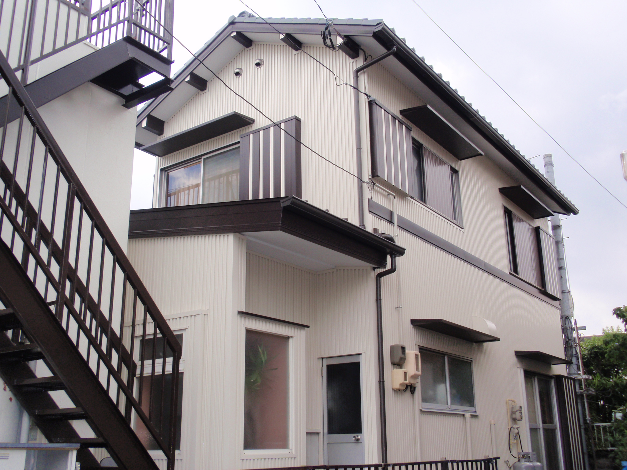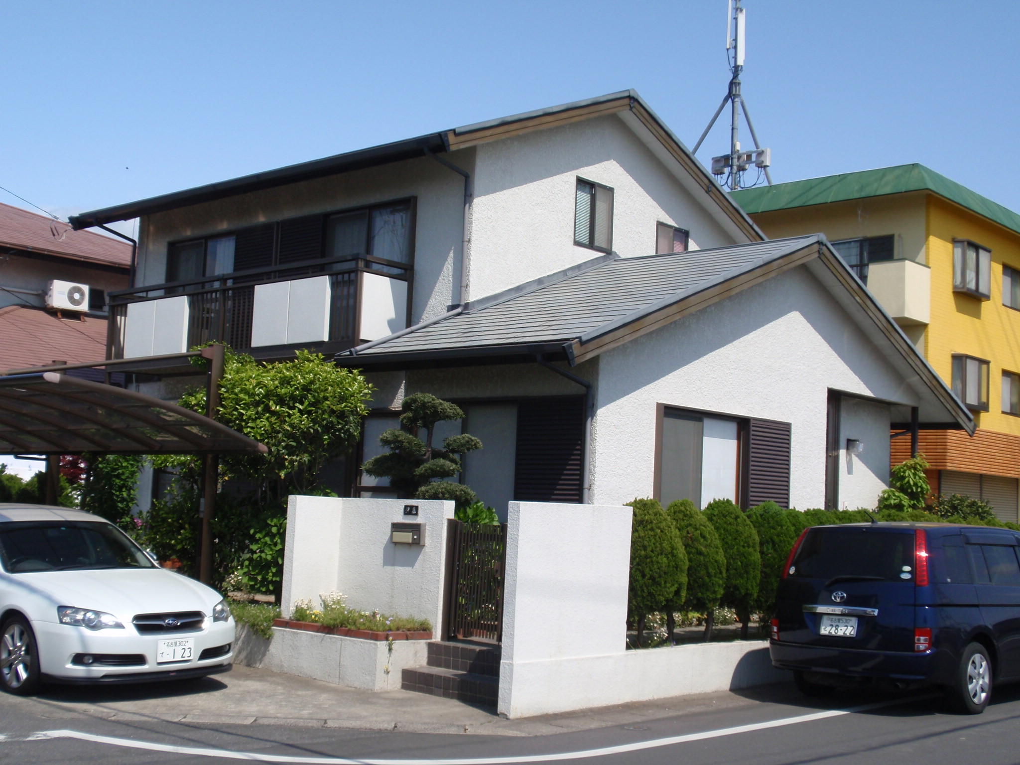 | 施工箇所 | 使用材料 | 材質 | 色 | ◆築後20年程経過した建物です。お施主様は、1F瓦屋根からの雨漏りと、外装が劣化し錆も出てきて見苦しくなったので、リフォームを考えられました。 ◆お施主様は以前から雨仕舞に対する金属製外装材の信頼性は良くご理解されてみえました。数年前、近所で屋根・外壁をリフォームされたところで “20年保証材のファインスチール”を知り、迷わず “エスフロン” でのリフォームを決定されました。 ◆1F屋根は瓦を降ろして施工。『タテ葺きZルーフ』にて雨漏りは完全にシャットアウト!外壁はカバー工法にて施工。カバー工法は既存の外壁を剥がすことなく、その上から施工する工法です。剥がし手間、廃材処理費も必要なく、天候による養生の必要性もなく、工期短縮にもつながります。 ◆フッ素塗装鋼板 “エスフロン” はファインスチールの中で最も耐蝕性・耐候性に優れた外装材です。長期メンテナンスフリーの建物に変わりました。 ◆“エスフロン” の良さを理解していただいたお施主様は、『素材の良さはもちろんの事、外観も美しくなり、20年保証付きで、安心して暮らせる』 と。大変満足されていました。 |