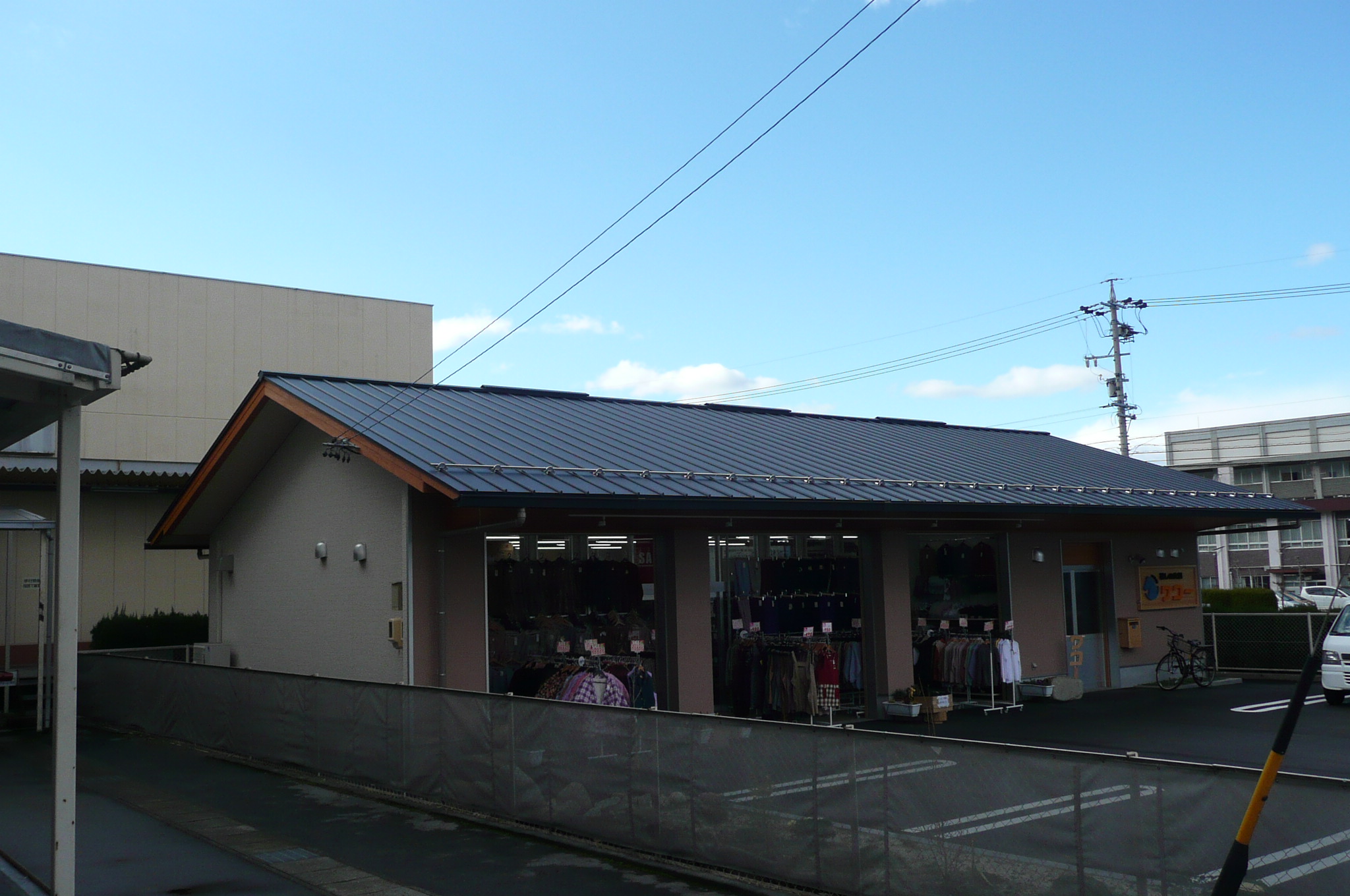 | 施工箇所 | 使用材料 | 材質 | 色 | ◆お施主様は、「今までスレート瓦で、夏非常に暑く、地震も心配なので地震・暑さ対策を一番に考えた店舗に建て替したい」との要望でした。 ◆設計士様は「地震対策には金属製が一番、又、ファインスチールには遮熱を目的とした遮熱鋼板もあり、アルミシートを併用すれば暑さ対策も万全」と、しかもファインスチールの中で最高級のフッ素塗装鋼板をご採用頂きました。 ◆工事も夏前に完成し、お施主様は、「この夏の猛暑でも充分エアコンも利き、電気代も節約出来ました。金属屋根は暑いイメージしかなかったが、今は違うなぁー」と、満足されていました。 |