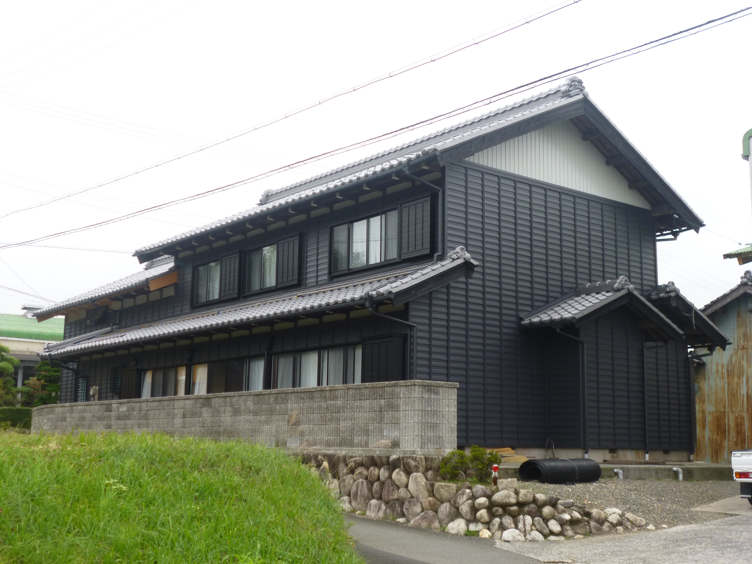 | 改装箇所 | 使用材料 | 材質 | 色 | ◆築30年の建物です。お施主様は息子様ご夫婦との二世帯住宅にするため、増改築されました。 ◆増築・改装をするにあたり、お施主様は、「金属製の方が雨仕舞が良いし、耐久性も良い。事実、既存の外装材はプリント鋼板だったので、良いことは分かっているが、いかんせん見栄えが悪い! 今回は他所でも見たが、黒色で、板囲い風にしてみたい」 との要望でした。 ◆お施主様の希望通り、黒を多く使用したことにより、建物に重量感が増し、日本家屋の象徴と言える鎧葺きが金属製外装材によりシャープに表現出来ました。 ◆お施主様は、「金属外装材を使用したからこそ、黒を多く取り入れ、窓・樋も黒色に統一しても趣が出ているんだ」と、又、「今後はファインスチールだから美観を長く保ち、次世代にも変わらぬ趣を残してくれるだろう」と、おっしゃってみえました。 ◆お施主様も、「自分の思うような日本家屋に出来上がった。若い世代にも愛してもらえる自宅が、同居の喜びに華を添えてくれました。」と、喜びに満ちあふれていました。 |