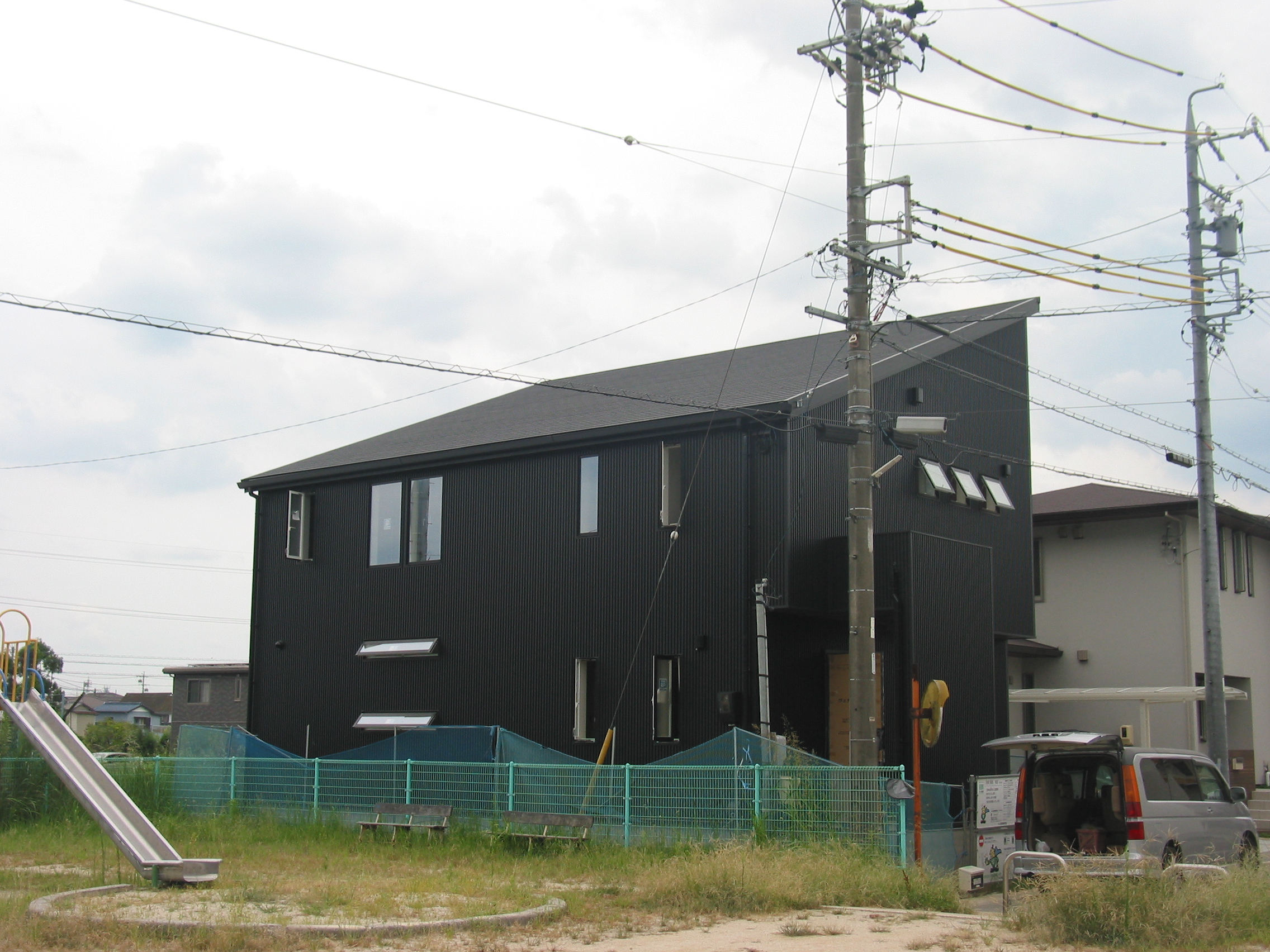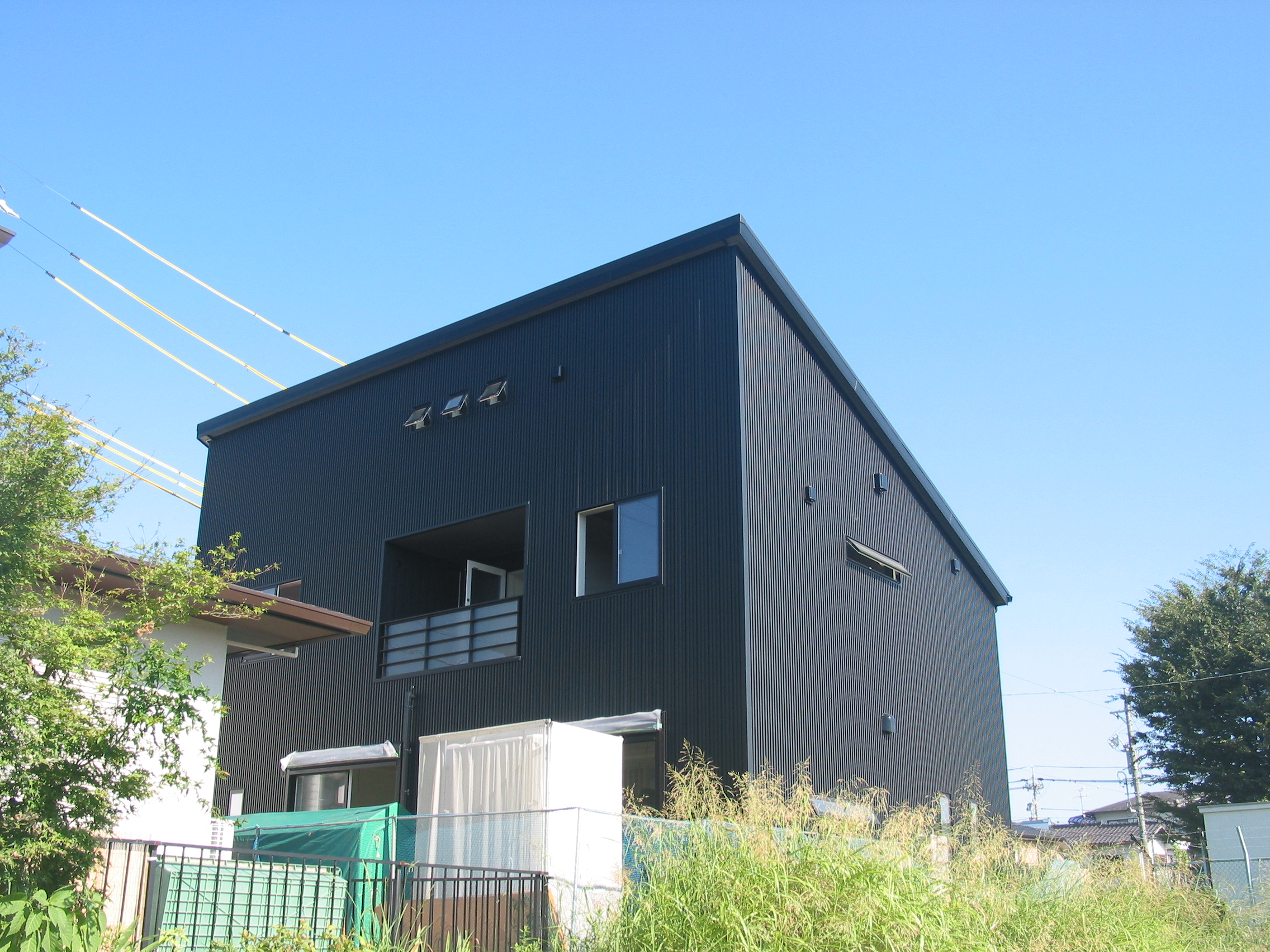 | 施工箇所 | 使用材料 | 材質 | 色 | ◆某ハウスメーカー様の建物です。今回初めて金属製外壁材を取り入れ頂くということでご採用頂きました。 ◆設計士様より、「お施主様はシンプルなデザイン住宅を希望され、又、色彩についてもこだわりを持ってみえる方なので・・・」 と言うことで、タカK型スパンを選択されました。カラーについてはJK99(ナイトブラック)で決定しました。 ◆お施主様の希望通り建物にあったオーダー寸法で、継ぎ目もなく、スッキリとシンプルに仕上りました。 ◆お施主様のこだわりを持った形状・デザイン、色彩を満たした住宅が仕上り、「イメージ通りの外観になった」と、大変喜んでみえました。 |