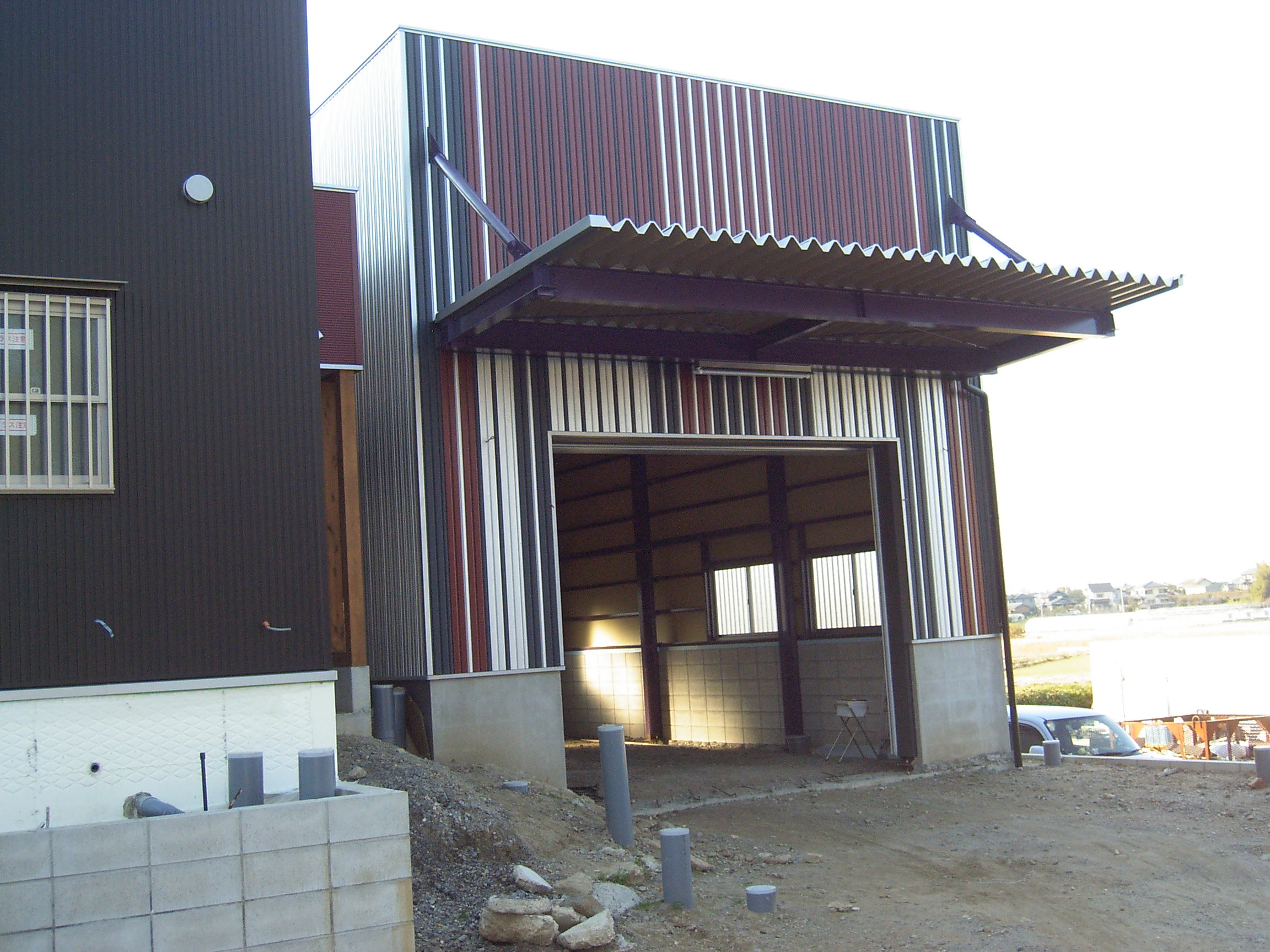 | 施工箇所 | 使用材料 | 材質 | 色 | ◆作業場を新設されるにあたり、「パッと目を引く、個性的なデザインの建物を造りたい」」と、いうことでキャップ取り外し自由なタカウェーブZ-2を選択されました。 ◆キャップ方式という特色を活かし、本体とキャップの色替えを自由に表現され、斬新的なオンリーワン作業場が完成しました。 ◆昨今は住宅も倉庫もオリジナルが求められる時代です。タカウェーブZ-2は形状も色彩もオリジナル、まさに時代のニーズに対応出来る外壁材です。 ◆お施主様は、「ちょっとやり過ぎたかなぁ、奇抜すぎたかなぁ、でもオリジナル性がよく出てよかったか」と、言ってみえました。 |