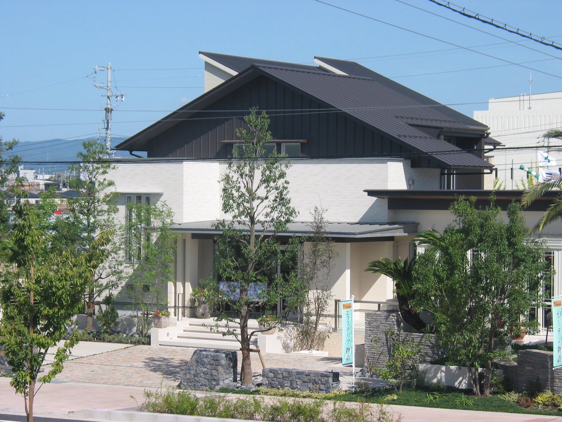 | 施工箇所 | 使用材料 | 材質 | 色 | ◆大手住宅メーカーが手掛けられた、設計管理店舗です。 ◆設計士様のコンセプトは 「直線美」 、一番直線のシャープさが強調されるのは 「ファインスチール」 ということでご採用いただきました。 ◆また、店舗は人の集まるところであり、安心、安全がより以上に要求される建物でもあります。ファインスチール外装材は軽くて丈夫、地震に最も強い建材です。又、長尺加工が可能で、窯業系建材のように、割れたり、剥れたり、落下する事も無く、しかも、目地切れの心配がないので、雨仕舞性にも大変優れています。 ◆ファインスチールはリサイクル可能な環境にも優しい建材でもあります。 |