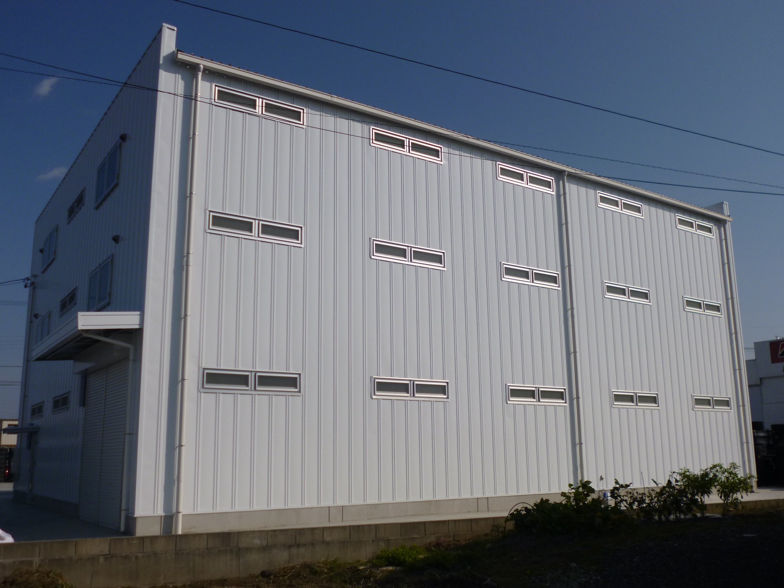 | 施工箇所 | 使用材料 | 材質 | 色 | ◆大型倉庫新設にあたり、「金属サイディングが良いと思うのだが、定尺品で継ぎ目からの雨漏りが心配。又、傷がつきやすく、錆が早いので不安」 との話しがあり、タカ巾広サイデリングを提案。 ◆タカ巾広サイディングはオーダー寸法にて長尺成型が可能。継ぎ目もなく、雨仕舞も完璧。メンテナンスフリーで、お施主様の不安も解消。長期安心をお約束します。 ◆デザイン的にもラインが幅広なので大型建築物には良くマッチします。 ◆お施主様よりも 「これなら継ぎ目もないし、傷も付き難い。大型物件の建物に形状が調和する」 と納得して頂きました。 |